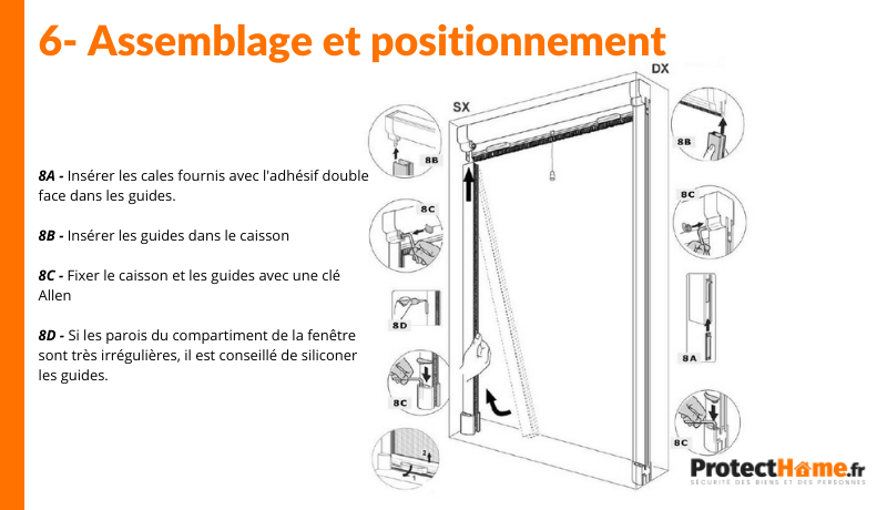 Comment poser la moustiquaire enroulable recoupable ? Suivez simplement les étapes de montage présentes dans la notice fournie avec le produit :