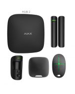 Ce kit AJAX contient : - 1 centrale AJAX Hub 2 - 1 Détecteur de mouvements à prise photo MotionCam - 1 Détecteur d’ouverture DoorProtect - 1 Télécommande SpaceControl
